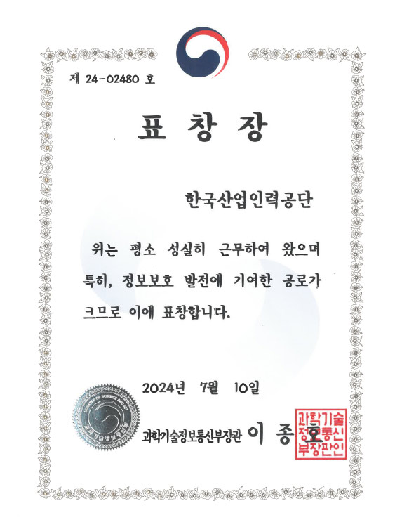 2024³â Á¤º¸º¸È£ À¯°ø °úÇбâ¼úÁ¤º¸Åë½ÅºÎÀå°ü
