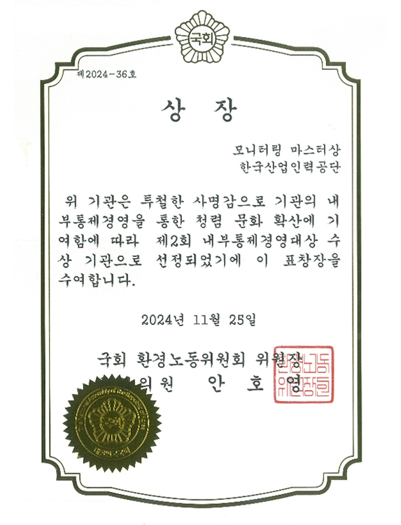 Á¦2ȸ ³»ºÎÅëÁ¦°æ¿µ´ë»ó ¼ö»ó