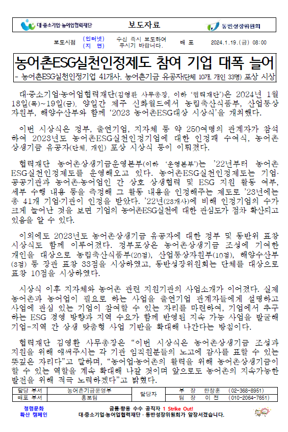 ESG´º½º_³ó¾îÃÌESG½ÇõÀÎÁ¤±â¾÷ ¼±Á¤