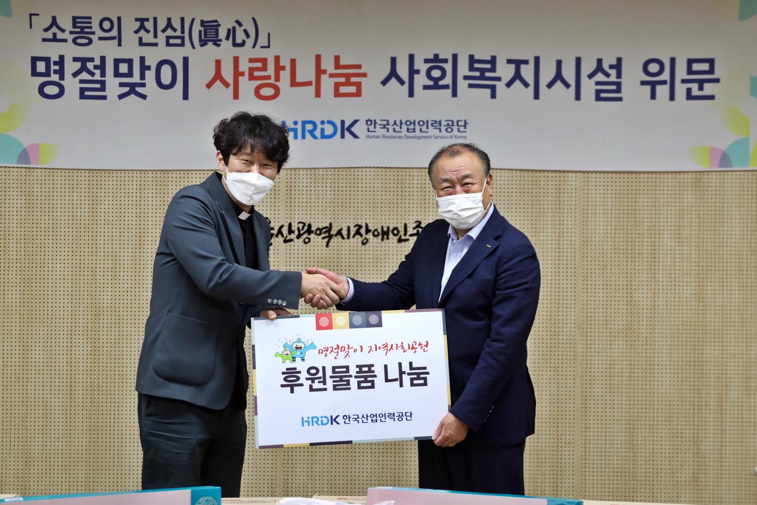 Çѱ¹»ê¾÷Àη°ø´ÜÀº 9¿ù 7ÀÏ Ãß¼® ¸íÀýÀ» ¸Â¾Æ ¿ï»êÀå¾ÖÀκ¹Áö°üÀ» ¹æ¹®ÇØ ÈÄ¿ø±Ý°ú ¹°Ç°À» Àü´ÞÇß½À´Ï´Ù.