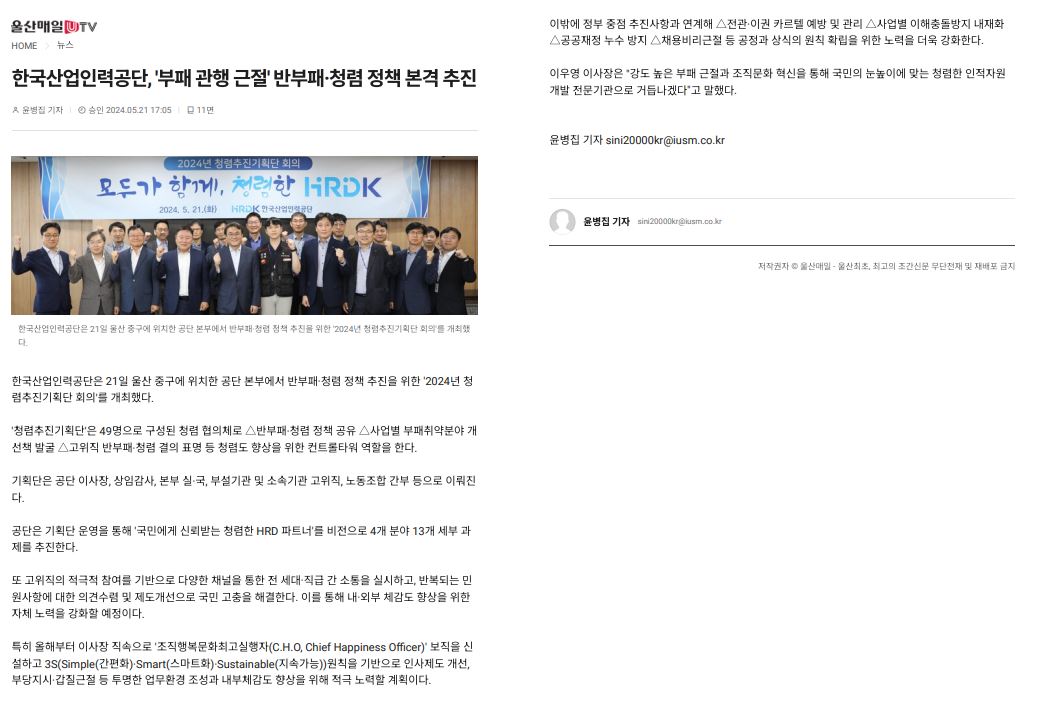 Çѱ¹»ê¾÷Àη°ø´Ü, "ºÎÆÐ °üÇà ±ÙÀý" ¹ÝºÎÆÐ û·ÅÁ¤Ã¥ º»°Ý ÃßÁø ¾ð·Ðº¸µµ ÀڷḦ ¾Æ·¡¿Í °°ÀÌ ¾Ë·Áµå¸³´Ï´Ù.